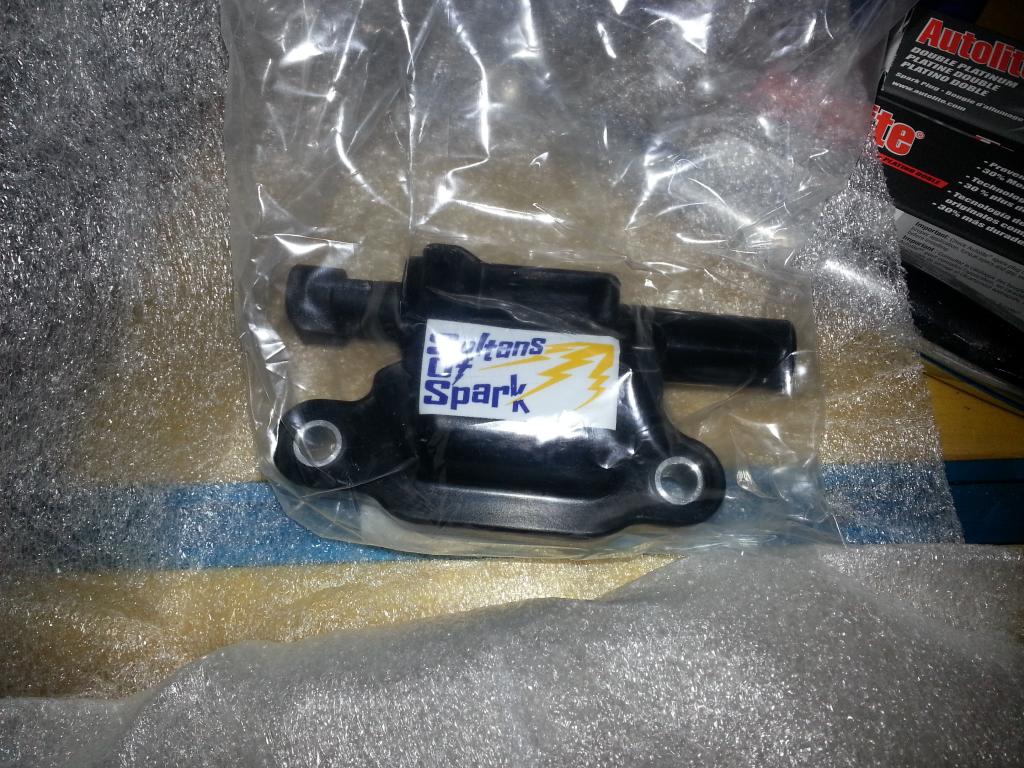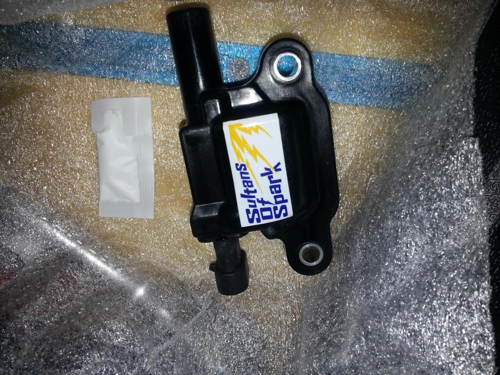 So, the first thing I did was unpack the coils. Workman ship is what you'd expect and outside of the markings, there are no physical difference. They bolted in the same location as stock. Here is a front and back. BTW that packet you see is the di-electric grease for the spark plug boot. DON'T put too much on and KEEP it off the plug/connection. That KILLS the spark. They give you one per coil but I used 1/4 of 1 -- so you have a LOT left over.