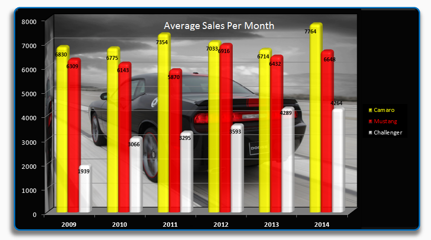 Wow! Very surprised the Challenger sold more then the Mustang. Camaro still killing it!