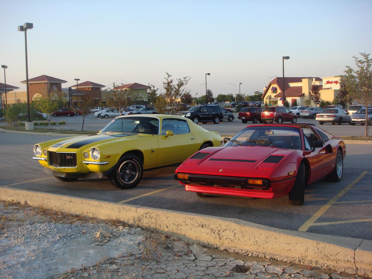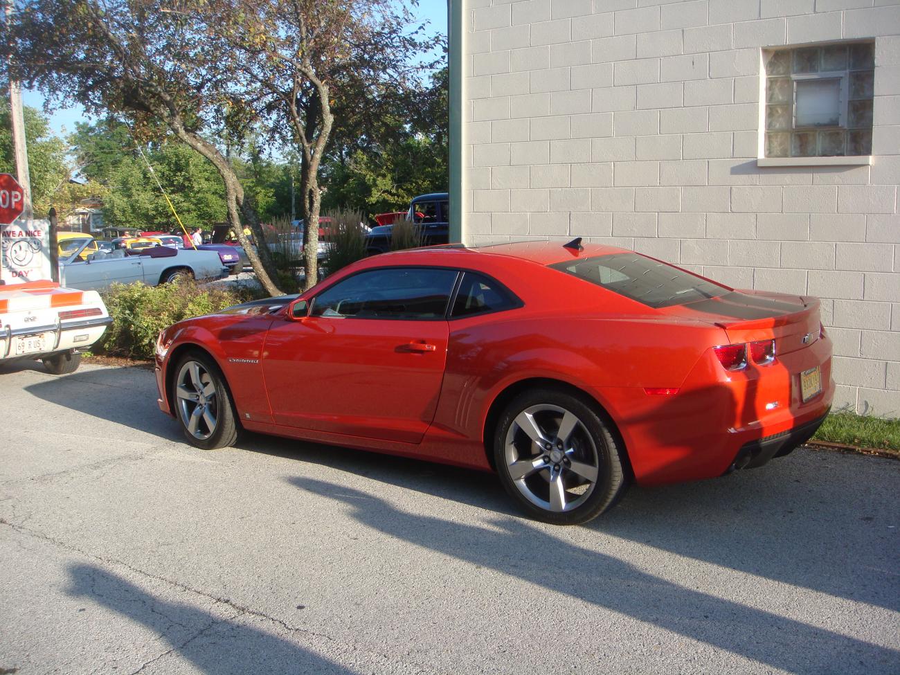Here are some pics of new and old Camaros as well as Firebirds from the Frankfort, IL cruise night, Thursday, August 13th. This is one of the biggest cruise nights in the southern suburbs of Chicago and it happens every Thursday night in the summer. Check it out if you are in the area. Check out the body colored grills and rear end on one of the three IOM 2010 Camaros that showed up. The yellow 1971 Z28 RS is my car and the red 1985 Ferrari 308 GTB is my fathers. In addition, that's a real 1969 Trans Am and the dark green 1973 Trans Am is one of the rare SD-455 engined cars.