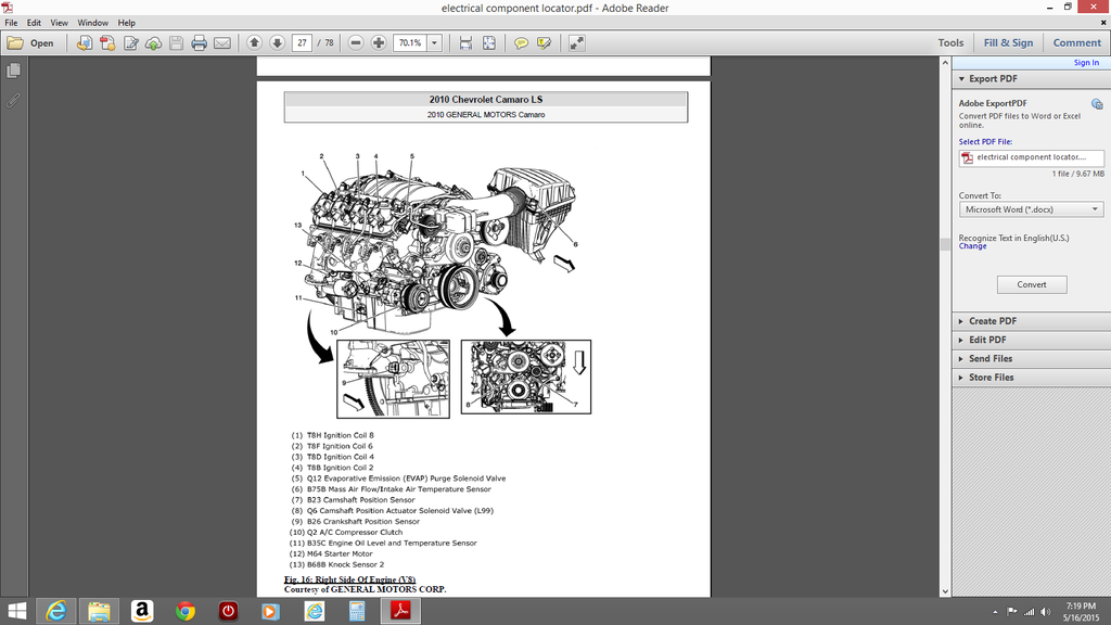 Could you help me to find a good source (perhaps some kind of manual would work best) for L99 engine components location. Gonna run a quick test related with P0010 error but I could not find anything on where intake camshaft position actuator is located :( I was only able to find only cam sensor location for LS3 engine which is not the case. Actually I am about to start with wiring test as I am pretty sure it could be damaged during CAI installation process. Any suggestion would be much appreciated. Me Last edited by rvadim76; 05-18-2015 at 04:05 PM. |