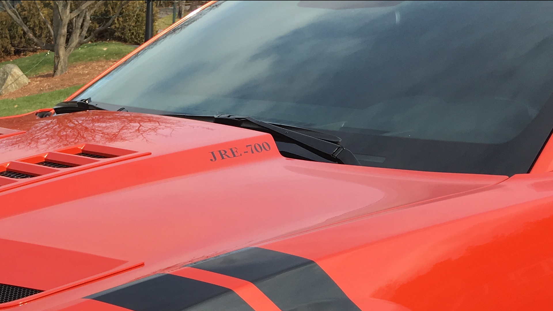 Once you have it painted on my recommendation is print out "Supercharged" on your home computer. Play around with the sizes and figure out what you want. Or measure the area and say "fill this" and find someone on like Pinterest who does vinyl cutting.