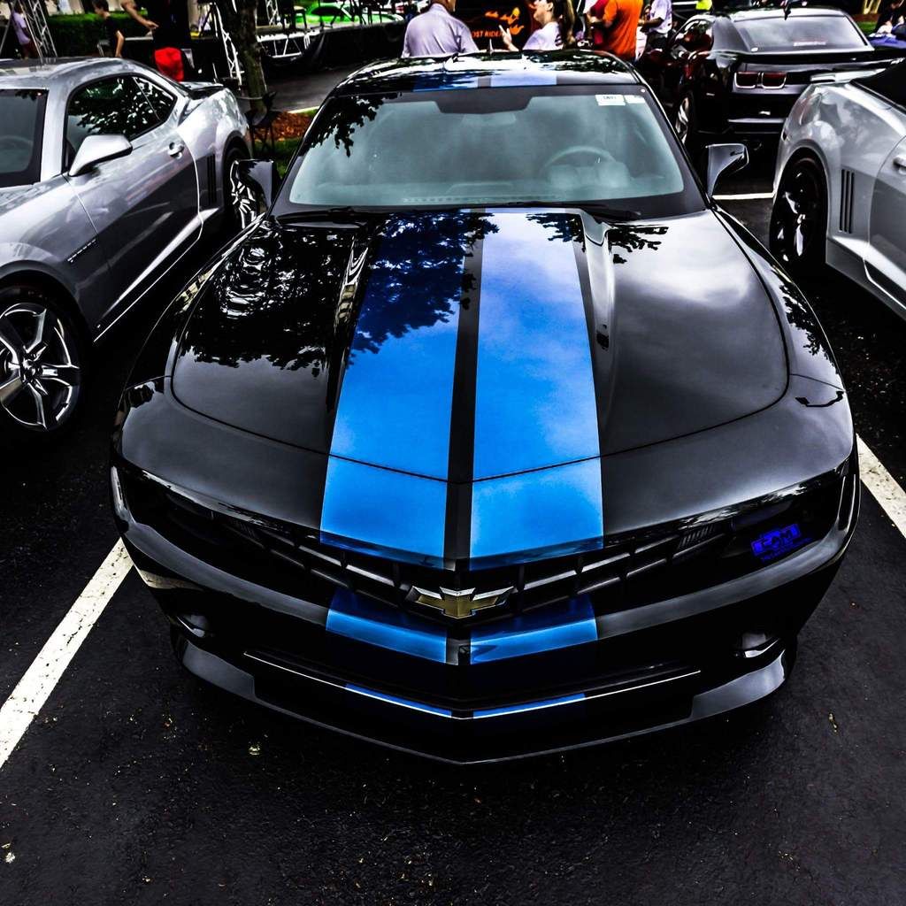 my ???? I would like match racing stripes on my camaro to match blue interior of camaro .....the car came with cyber gray racing stripes this would be fine with me if my door panels had silver or black and seats made black or gray the camaro does not look correct to me with this mix of colors have any black camaros come from GM with the blue stripes package...Not sure how it will look ????? do any you guys have this color combo ????? got this car used If any one could post pictures of your camaro with blue interior black outside with other stripe options would be awesome