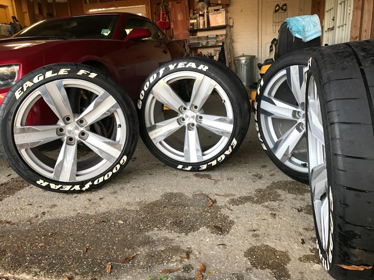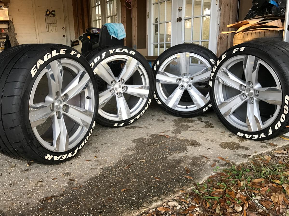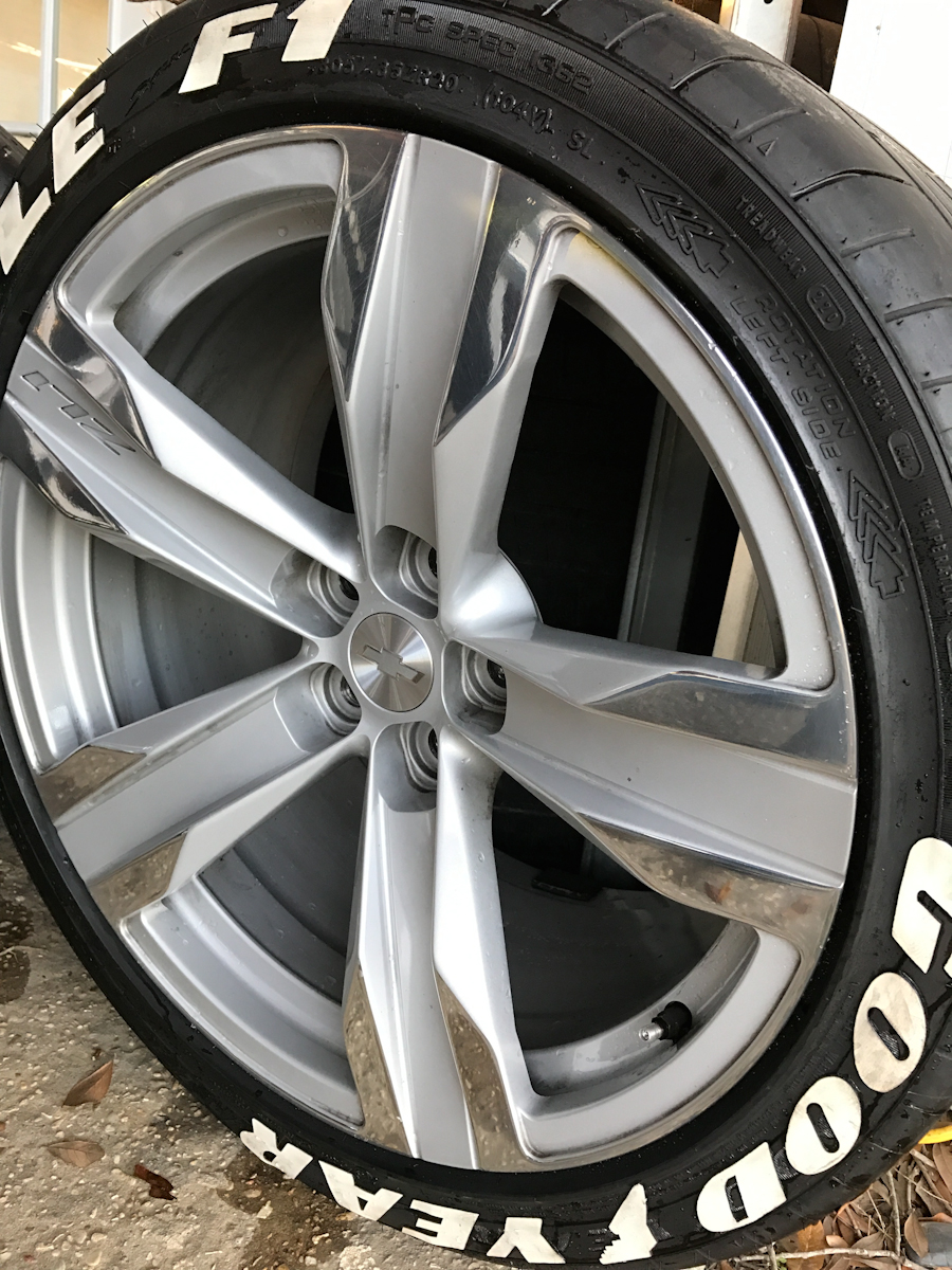 285 front, 305 rear, same as factory. 20x10.0 front w/ 285/35-20 tire 20x11.0 rear w/ 305/35-20 tire Removed from a 2013 ZL1. The Good: Low mileage on the wheels Lots of tread left on the tires TPMS sensors Factory GM wheels Discounted price Great condition other than the issues listed below The Bad: Damaged in shipment (not in a wreck, not curb rash) The packaging was torn in shipment and 2 wheels were scratched (rear wheels) 2 valve stems were bumped (rear wheels) 1 valve stem is mostly in tact, holds air, but cant seem to re-fill (likely replace) 1 valve stem is not in tact, wont hold air. Nothing is wrong with the tire. 2 valve stems work perfectly. See pictures for scratches. The Story I bought from a camaro5 member, they were damaged in shipping, he wouldnt own up to it, I lost the paypal disupute, and cant take out a UPS claim seeing as I am not the shipper. They still look great, all things considered, besides the specific damage spot. In my opinion, a wheel repair service would make short work of it, some polishing and some paint. I haven't attempted to correct any of it. The decals on the tires are actually made of rubber, and are permanent, but according to the company that makes them, can be removed with a solvent and some elbow grease. They can also be bleached to look new again. Buying/Selling I am prepared to ship, I believe shipping was $200 or so unfortunately, but I will work with you on the price and all that. I am just trying to recoup some of the money. They are located in Covington, LA, I am willing to drive/meet halfway if someone is in the Louisiana/Mississippi area. Im not trying to hide anything, I can post more pictures, answer any questions. As I said, the wheels were just manhandled by a UPS monkey, they aren't significantly damaged. I paid $2,200 shipped and am discounting them for the damage, I am asking for reasonable offers, thanks! Last edited by vroomapunk; 02-07-2017 at 07:23 PM. |