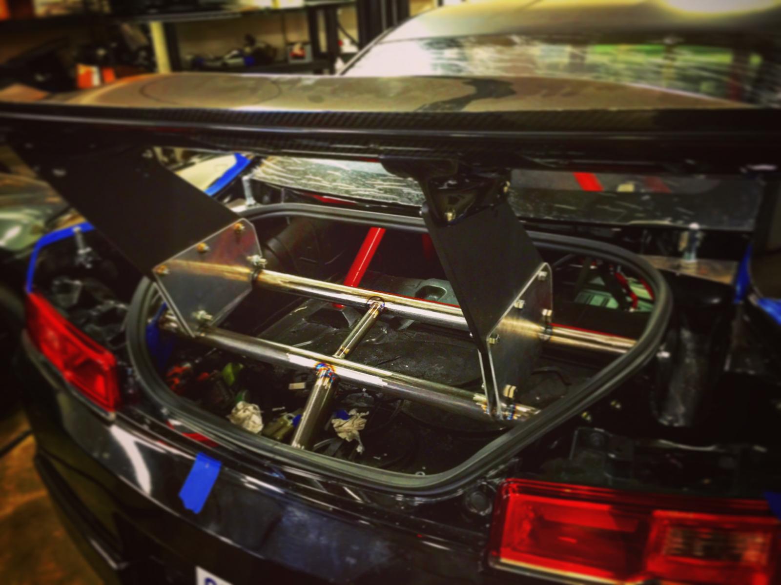 Not a fan of that rear wing mouting, it's hard to see but it looks like any downforce created will just go into flexing the boot (trunk!) panel... the way Russ has done it on the Fushion of Ideas Z/28 is a lot better!