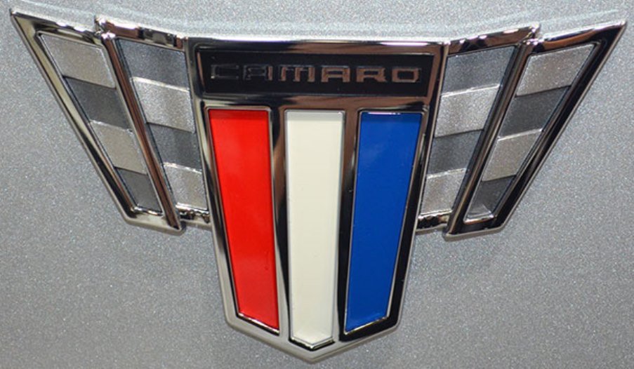 Holy Color Coordination Batman the car colors match the Camaro Logo on the fender. Red, White, Blue, and even the car silver stripe color is in the emblem checkered flags.