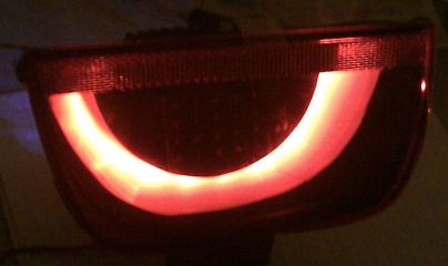 A company on here is making an LED tail light that has the sequential feature, as well as a show feature. Well the piece is shaped like the inside of the tail light housing. I was thinking, what if you were to put that piece inside the housing, maybe an inch or so from the red lens on the outside, and behind it you put a bulb in that doesn't have the two filliments so it doesn't get brighter when you hit the brakes. So whenever you have your parking lights turned on, the bulbs will be on low light, but the LED piece will be blocking most of the light, allowing it to only show at the bottom and around the sides Then when you hit the brakes, the LEDs on that piece come on. Presto, you have an afterburner kit.
