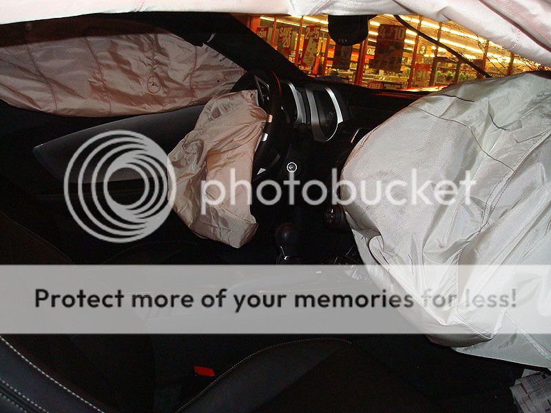 Sad part is we were coming back from the day out for my girlfriends birthday. She hit her knee on the dash or something flying hit it. Swollen knee and bruises, and cut on her hip from the seat belt. I have a burn on my neck from my belt and a busted left hand from hitting something (a-pillar or side airbag or something). Both are sore, necks hurt but overall we'll be fine. Car may be a total loss. Hope his insurance treats me well... |