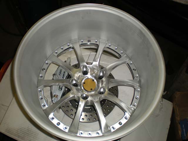 In the pic you can see the US Brakes set up that we are running. The fronts are 4 piston with drilled rotors and the rear are 2 piston with drilled rotors. We are running a second set of 2 piston rear calipers with a hand E brake for drifting purposes...