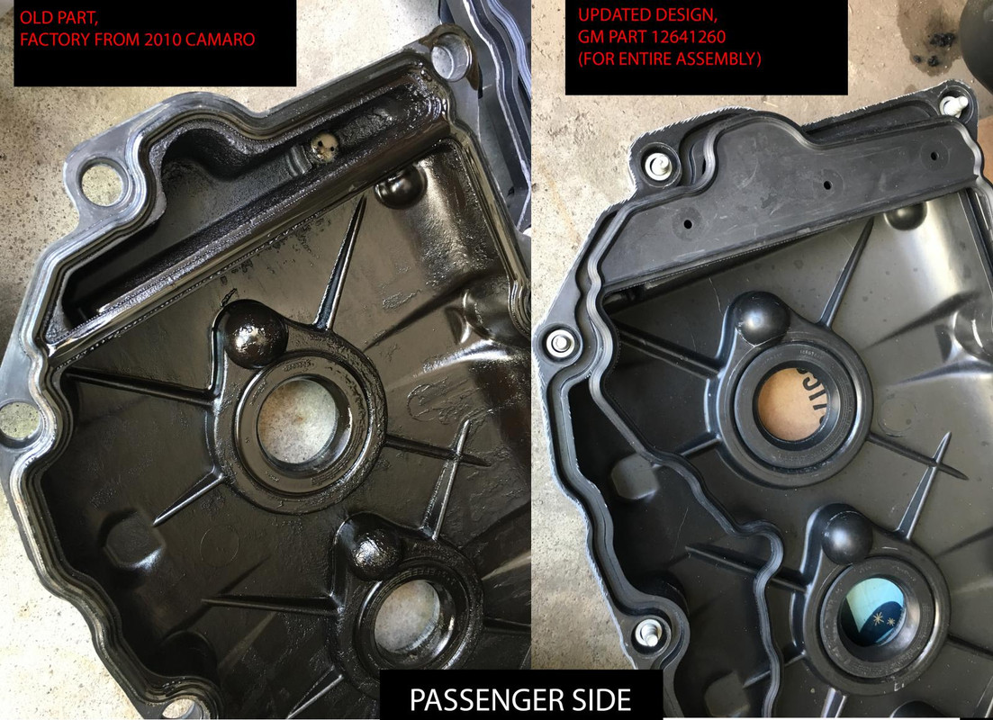 Pull the PVC out of the valve cover. Drill the bottom holes to 5/64th. Drill the top hole to 7 to 9/64th. When I pulled mine, one hole was clogged, and the other was close to it. There is no check-ball or spring, it's an open orifice device. These are how small the bottom holes are: ![]() TOP: ![]() Later 2012-2014 TOP: ![]() HOW-TO: | ![]() ![]() ![]() ![]() ![]() ![]() ![]() ![]() ![]() There is also a new Valve Cover gasket for the passenger side that closes off that big area under the PCV: ![]() That greatly cuts down the oil consumption through the PCV. |