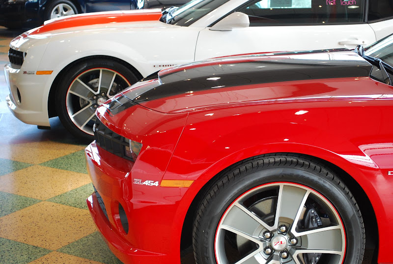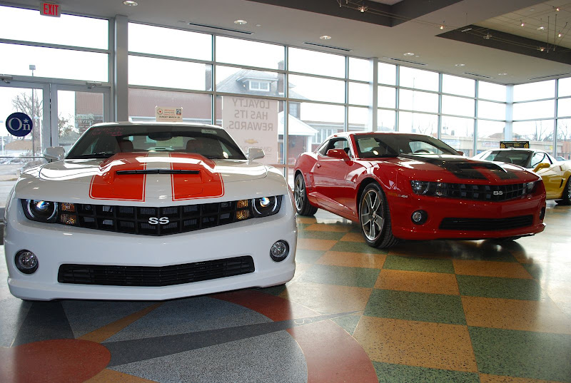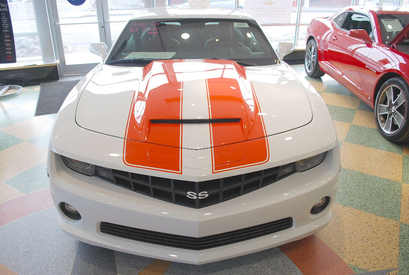 They called and told me about the white w/ orange stripe 2010 Camaro SLP575 that they just got in at Paddock Chevrolet (Kenmore NY). Grabbed my camera and went in to take a few pics. Wishing I was able to hear it, but it's in the showroom hiding from the Buffalo weather.