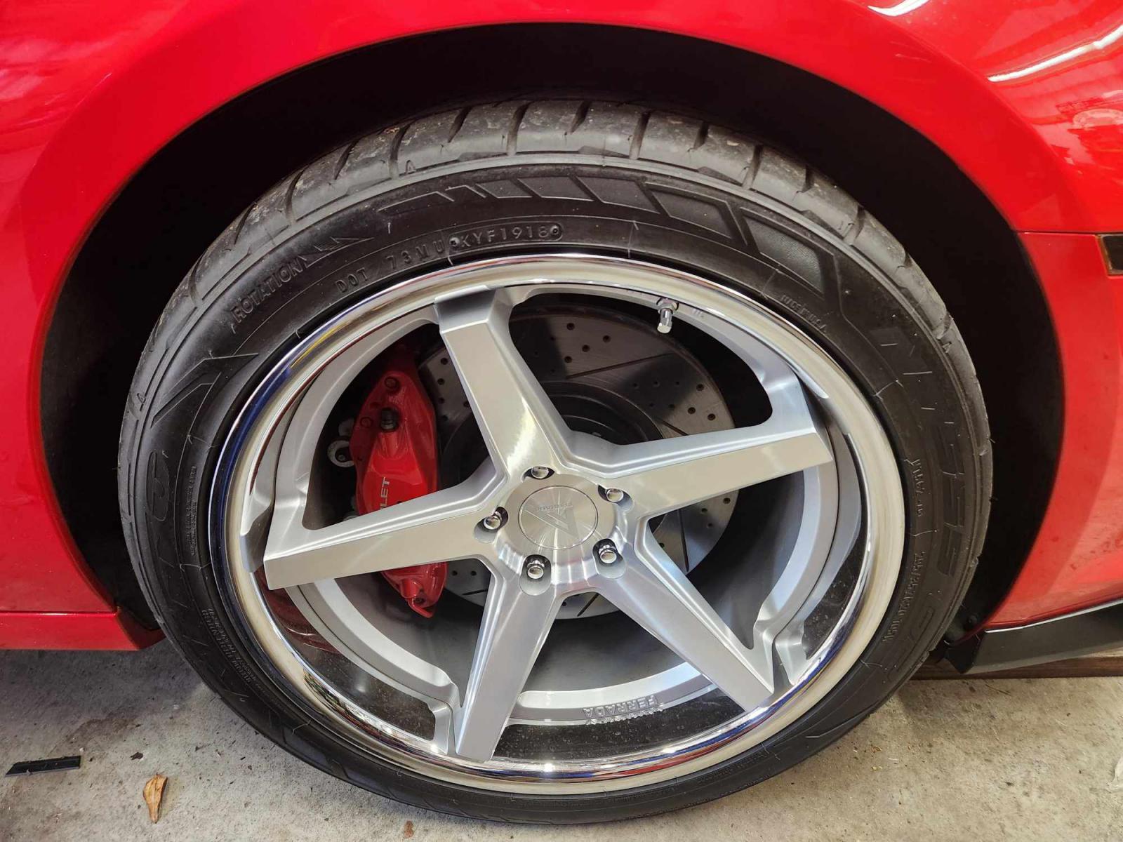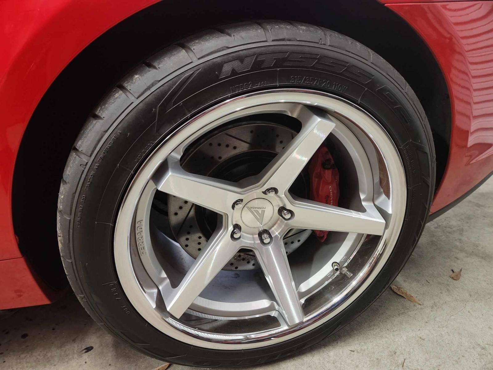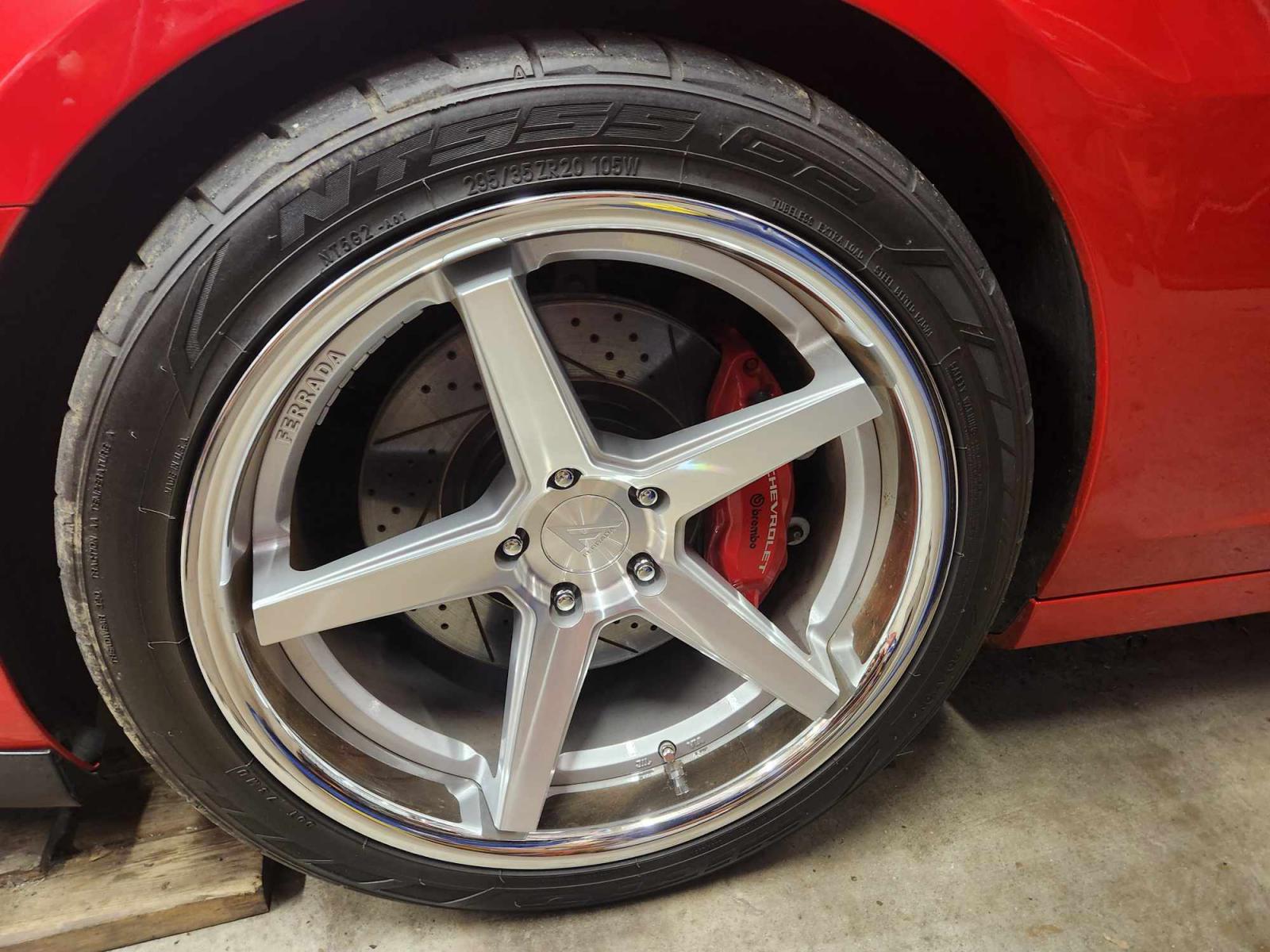 Ferrada FR3 wheels and tires for 5th and 6th gen Camaro, these wheels and tires have less than 8,000 miles. Comes with lug nuts and tire sensors. Tires were just balanced, ready to bolt on and ride. Front 20x10.5 with 295/35/20 tire, rear 20x11.5 with 315/35/20 tire. Tires are Nitto 555 G2. Can ship on your dime, NO TRADES.