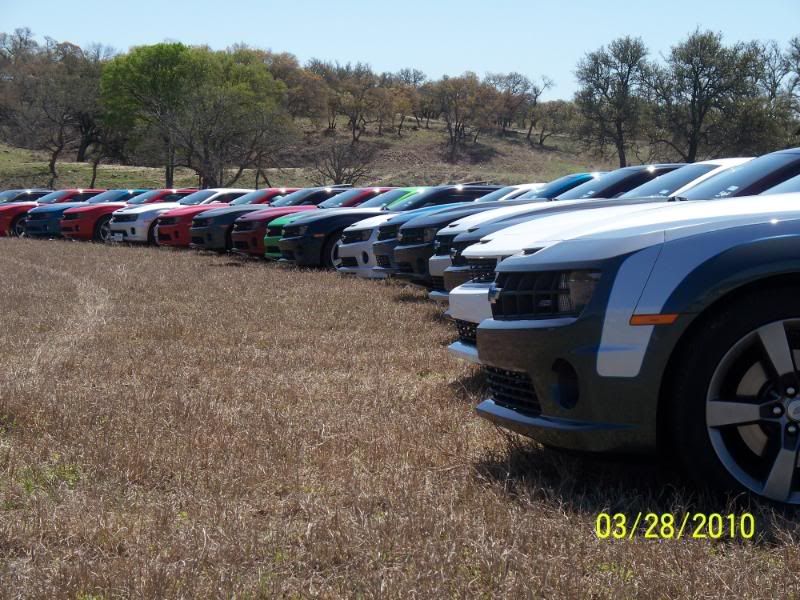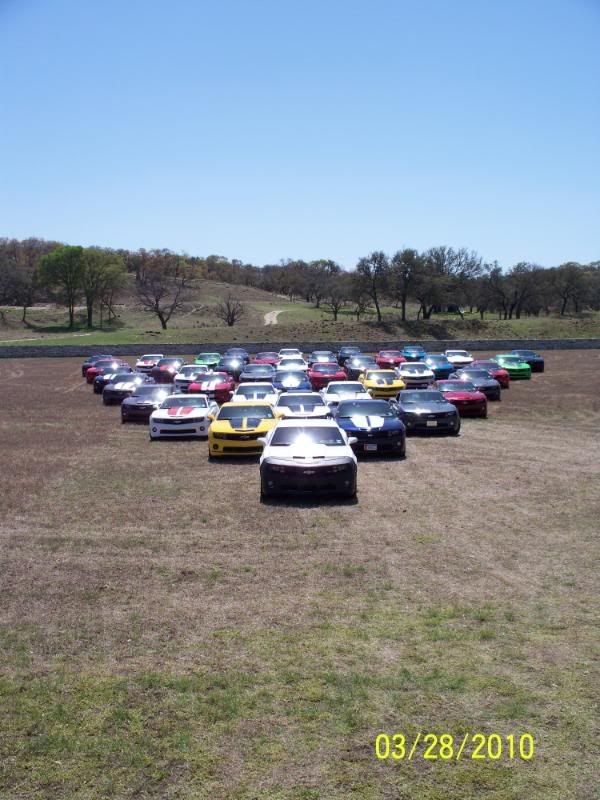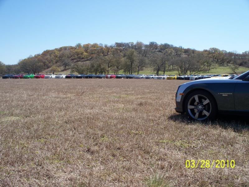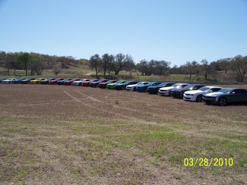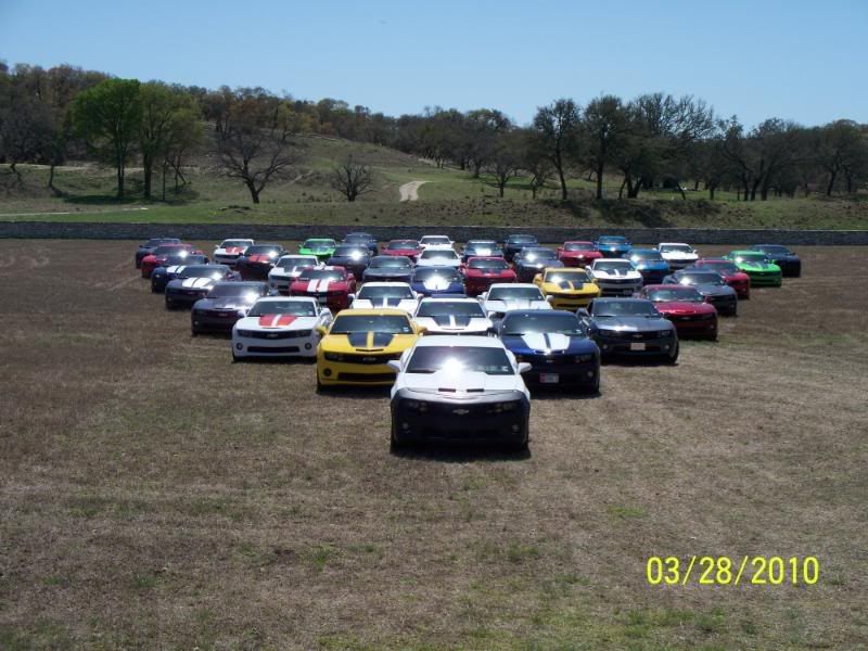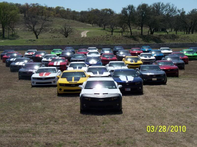 Un-be-lievable! That's what today was. First, on behalf of the combined memberships from the San Antonio, Austin, and Rio Grande Valley Camaro5 clubs, I want to extend sincere and heartfelt thanks to Darrell (SumittSS) for coming up with the idea and the location, and for planning and coordinating all the details of our FANTASTIC road trip today! Thanks also to James Avery Ranch for allowing us to take advantage of their beautiful property for the event! In all, we had 41 2010 Camaros attend, including cars from Austin and four cars from the RGV, who demonstrated true love for the Camaros and camaraderie by driving 4 hrs to join us before the hour-long trip from San Antonio. We also enjoyed the pleasure, once again, of Teresa's gorgeous purple Challenger SRT8 and Caleb's (Darrell's son) white Cobalt. We book-ended the trip with a long snake of cars out and back...a true site to behold! Camaros as far as the eye could see! Wow, wow, wow! We even had the opportunity to make a "special stop" on the way up (you'll need to ask Darrell's wife, Linda about that--LOL). Shortly after we arrived, we had a superb lunch, catered by Delicious Details (our thanks to them too for some great chow!). We took some awesome group pictures of the cars and drivers, and a lucky few managed to grab some great pics of their cars in front of the Avery barn and down along the creek! What a great way to spend a day with friends and family. Let's get those pics up to commemorate our best showing ever and a phenomenal Camaro5 event! Post on...!