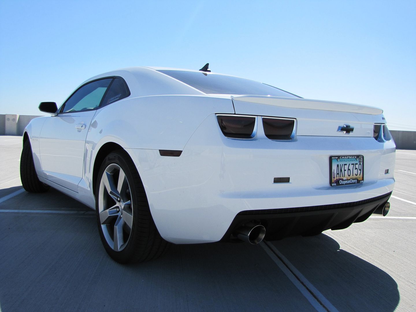 so just installed a black out kit on my summit white camaro!! I love it!! I purchased this kit form a guy on here named black10 (great guy!) this kit includes black out tail lights, reverse lights, sidemarkers, and bowties. ![]() If these pics are to big please let me know!! here are some pics: ![]() ![]() ![]() ![]() ![]() With the lights on ![]()