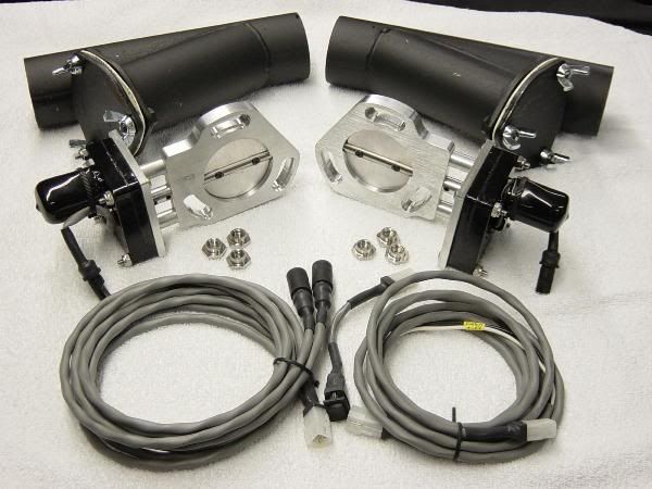 The round cutouts are available with the flowtech Y pipe for easier installation. Just cut out a section of pipe, replace the section with the Flowtech Y pipe, attach the electric motor and cutout, run your wiring and you are all set.
