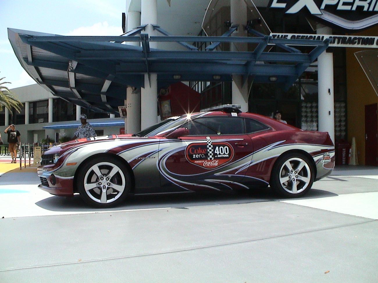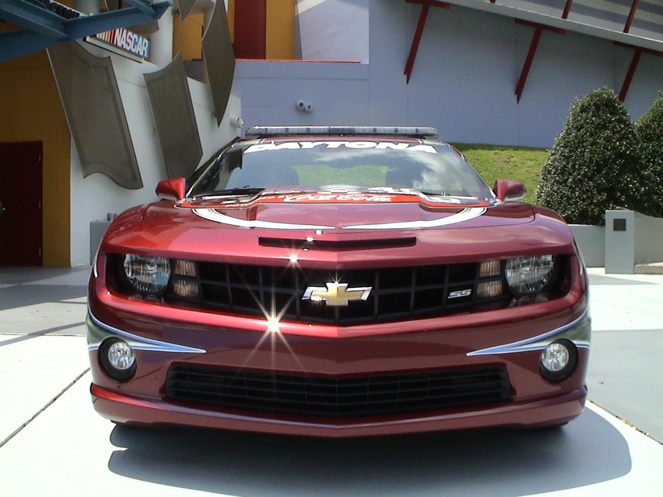 i don't know if anybody's posted pics of this Camaro or not, so i figured i'd snap a couple just in case. the Coke Zero 400 race at Daytona on July 3, 2010 will have a 2010 Camaro pacing it again this year. this time, it's based on a Red Jewel Tintcoat 2SS automatic without the RS package. i doubt this is the actual car based on the fact that it had red tail lights instead of amber, a license plate, and a kid's booster seat in the back - but enough with the talking... here's the pics