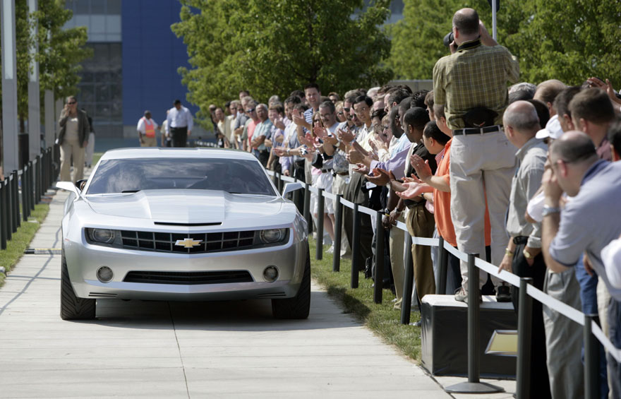 GM Chairman and CEO Rick Wagoner announced today that GM will build an all-new version of the Chevrolet Camaro sport coupe based on the award-winning concept that stole the spotlight at the North American International Auto Show and has ignited the passion of car enthusiasts around the world ever since – even spurring consumers to start petition drives and send in certified checks in hopes of placing early deposits. “The overwhelmingly enthusiastic response to the Camaro Concept continues to remind me of the uniquely iconic place our products can have in customers’ hearts,” Wagoner said. “Camaro is much more than a car; it symbolizes America’s spirit and its love affair with the automobile.” The all-new Camaro will begin with early production versions at the end of 2008 and will go on sale in the first quarter of 2009. “The new Camaro will be almost identical to the concept, a thoroughly modern interpretation of the 1969 model, considered by many to be the best design of the car’s first generation,” said Ed Welburn, GM’s global vice president of design, who owns a 1969 Camaro SS. The front-engine, rear-wheel-drive sport coupe will feature an independent rear suspension, and will be offered in a variety of models with the choice of manual and automatic transmissions and V-6 and V-8 engines. Chevrolet General Manager Ed Peper said the new Camaro will appeal to both men and women, and unite customers with fond memories of previous Camaros with those who first experienced a Camaro when the concept was unveiled in January. “We intend to make the all-new Camaro relevant to younger buyers while retaining its appeal to current fans,” said Peper. “The beauty of the best Camaros is that they have always been beautiful to look at with performance that rivals expensive European GTs. Yet they were practical enough to drive every day and priced within the reach of many new-car buyers.” In fact, the Camaro Concept design team embodies the universal appeal that Chevy envisions for the car: The core team reporting to the lead designer ranges in age from 27-35 and came from all over the world, yet they all had similar experiences growing up with a love for the Camaro and American performance cars. Their concept redefines the Camaro for both existing and new generations of fans in a contemporary way with responsive performance and modern technology. Peper said Camaro will complement Chevy’s already-popular portfolio of performance vehicles led by Corvette and including its broad SS lineup. Rest of photos from Press Event for local Camaro fans! - http://www.camaro5.com/forums/showthread.php?t=96