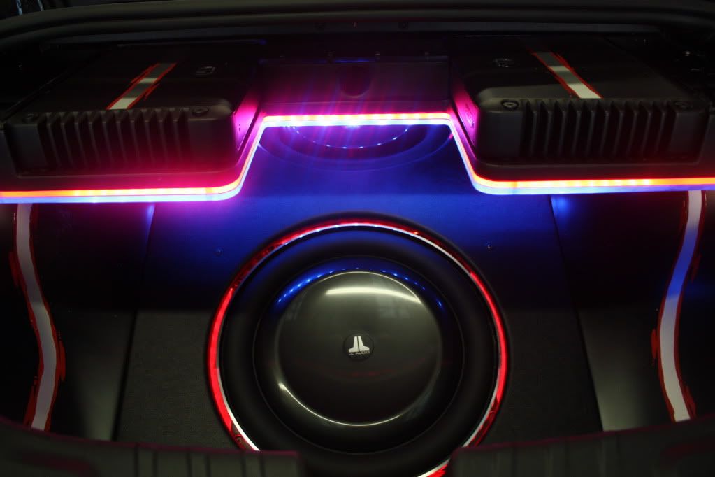 2 JL flat 13's w JL 750/2 and 600/4 Amps painted to match the car Amp rack is motorized to be hidden under the back deck also ![]() ![]()